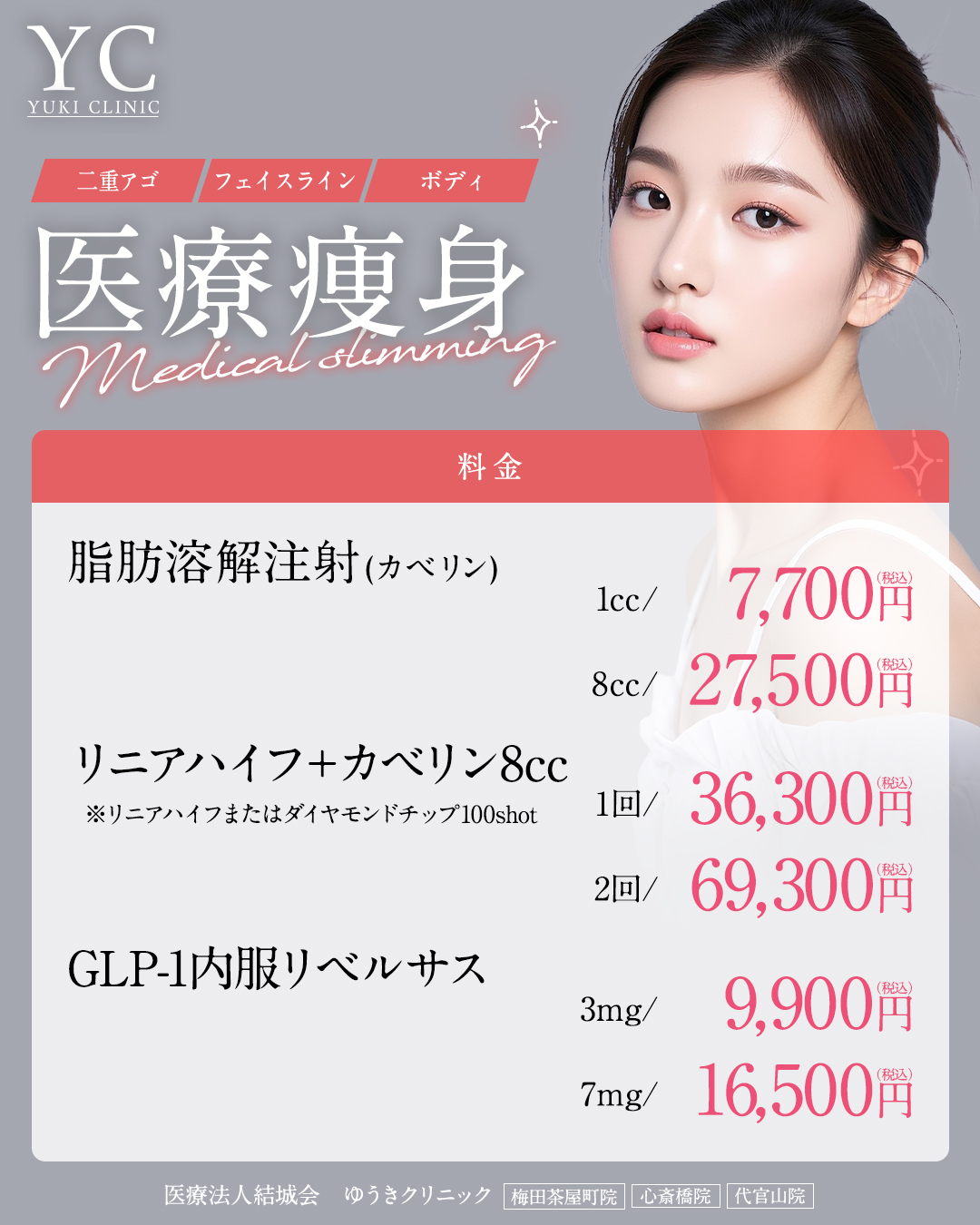 梅田・心斎橋・代官山のゆうきクリニック